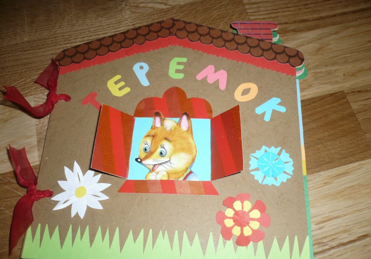 Таким же образом можно изготовить папку-раскладушки своими руками. Для малышей на таких папках можно разместить сказки с картинками, им будет интересно рассматривать героев.